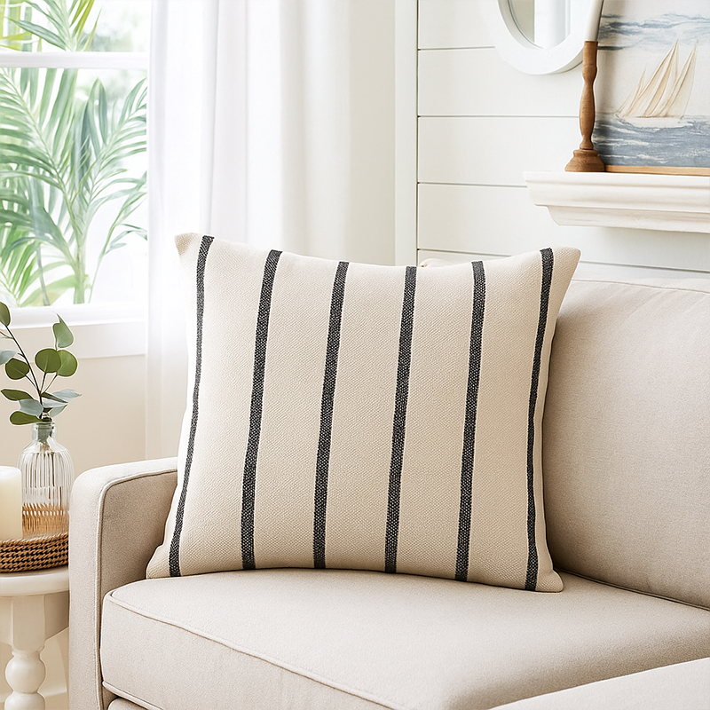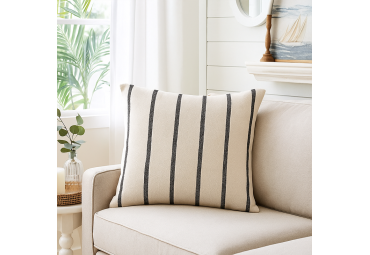 Faites l'expérience du coussin Saint-Trop noir, carré de 50x50cm. Extrêmement à la mode, son motif marinière est typiquement estival, il insufflera une atmosphère chaleureuse et amicale à votre espace intérieur.