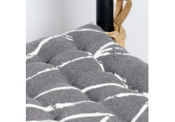 La galette de chaise TAMPA ardoise est ornée de motifs triangulaires blancs. Elle présente un effet capitonné pour ajouter du volume et du confort. Des lacets sont également prévus pour attacher la galette à la chaise, assurant ainsi un ajustement sécurisé. L'ensemble donne une apparence élégante et soignée à la chaise tout en offrant un soutien supplémentaire grâce à l'effet capitonné.