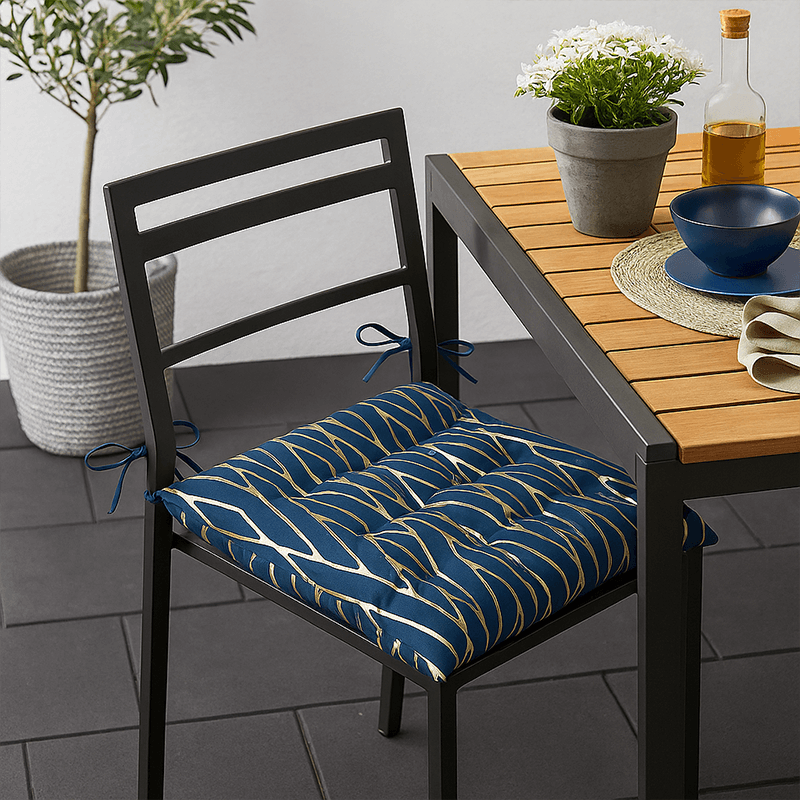Cette galette de chaise HOUSTON BLEU est le coussin d'assise dans des couleurs que nous ne voyons pas très souvent, le bleu étant peu utilisé en décoration
