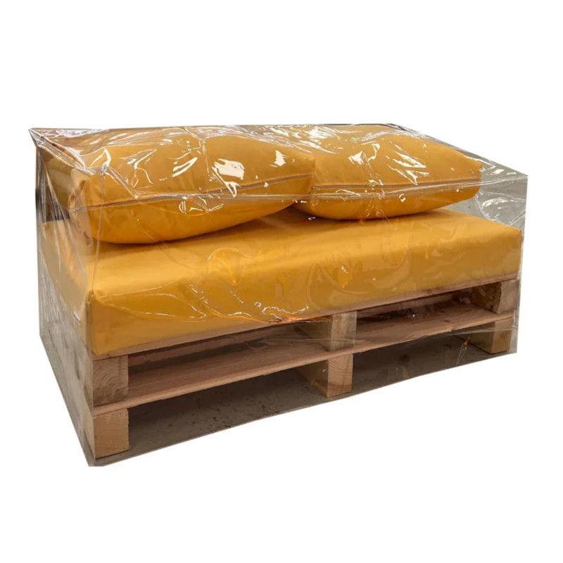 Confectionnée sur mesure, cette housse est cousue aux dimensions exactes de votre module, garantissant une protection totale de la mousse, du tissu des coussins et de la structure en bois. Le PVC cristal transparent permet de conserver la visibilité du mobilier tout en assurant une excellente résistance.